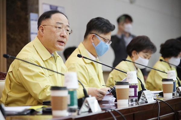 홍남기 경제부총리 겸 기획재정부 장관이 20일 오전 정부서울청사에서 열린 제4차 비상경제 중앙대책본부 회의를 주재하며 발언하고 있다. ((c) 연합뉴스)