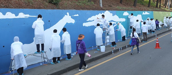 서울 서초구 서초대로66길 옹벽에서 서초구자원봉사센터 관계자들과 두산중공업 임직원들이 동물, 나무 등 자연물 벽화 그리기 작업을 하고 있는 모습. (사진=(c) 연합뉴스)학교급식 중단, 외식감소 등으로 어려움을 겪는 농어민을 지원하고 소비자들이 저렴한 가격으로 농수산물 구매할 수 있도록 온·오프라인 매장과 연계해 600억원 규모의 농수산물 할인쿠폰(20% 할인, 최대 1만원)을 신규 지원한다.