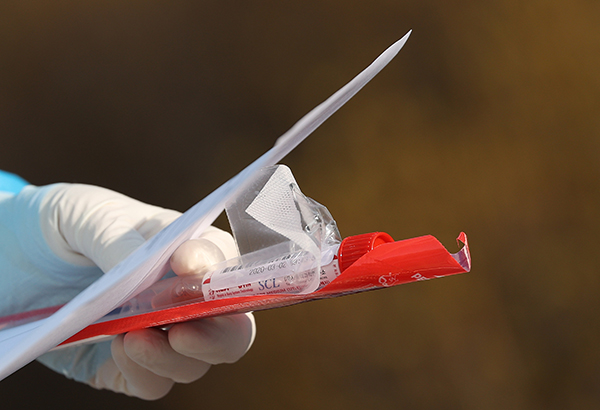 서울 중랑구 서울의료원에 설치된 선별진료소에서 의료진이 검체 채취 키트를 들고 있다. (사진=(c) 연합뉴스)현재 국내 검체채취 키트 일일 공급량은 약 3만 4000개 수준으로 최근 일일 수요량을 충족하고 있다.