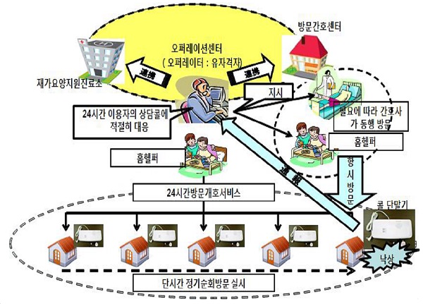 가족이 없거나 야간시간대 돌봄을 제공하기 위해 하루 중 단시간(20~30분간) 동안 수시로 방문하는 24시간 순회돌봄서비스 도입 등이 그 예다.