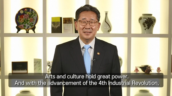 박양우 장관은 코로나19 확산 방지를 위한 국립문화예술기관의 온라인 공연·전시와 방탄소년단(BTS)의 ‘방방콘’ 등 비대면 문화예술 활동 사례를 소개하며 “4차 산업혁명시대의 새로운 기술과 문화예술 콘텐츠가 함께 한다면 코로나19와 같은 세계적 위기 속에서도 새로운 문화예술의 장을 열 수 있을 것”이라고 말했다.