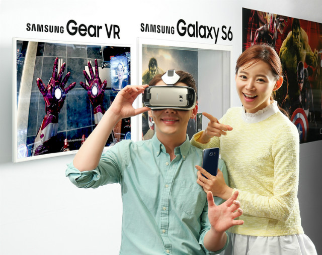 삼성전자가 갤럭시 S6와 결합해 가상 현실 콘텐츠를 즐길 수 있는 헤드셋 삼성 기어 VR을 7일 출시한다.
