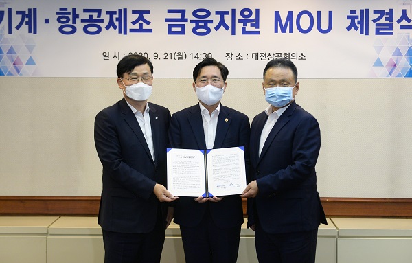 산업통상자원부는 21일 대전상공회의소에서 ‘기계·항공제조 금융지원 MOU 체결식’을 열고 3000억원 규모의 금융지원 프로그램을 공개했다.
