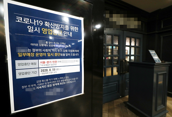 강화된 사회적 거리두기 2단계가 시행된 지난달 19일 인천시 남동구 한 뷔페식당 출입문에 운영 중단을 알리는 안내문이 부착돼 있다. (사진=(c) 연합뉴스)우선 코로나19 피해로 매출이 10% 이상 줄었거나 줄어들 것으로 예상되는 기업에 연 2.15%의 금리로 2000억원을 융자해준다. 특별재난지역 소재 기업은 금리가 연 1.9%로 더 낮게 적용된다.