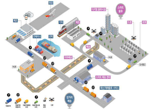 기존도시를 대상으로 지역사회와의 협업을 통해 물류서비스를 개선하는 스마트 물류 실증단지를 2025년까지 총 10곳 조성한다.