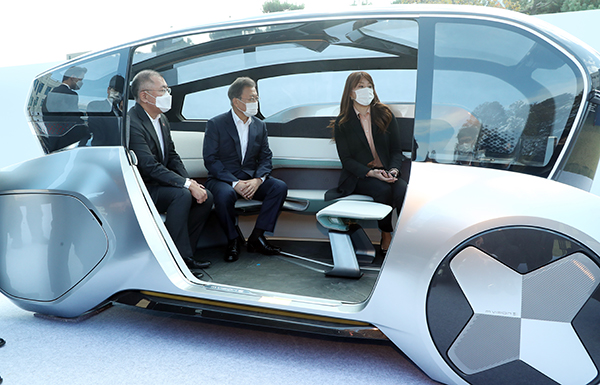 문재인 대통령이 지난 10월 30일 오전 현대자동차 울산공장에서 열린 ‘미래차 전략 토크쇼’에 참석한 뒤 미래차 자율주행 기반 공유형 이동수단 콘셉트카인 현대모비스의 ‘M.비전S’를 정의선 현대차그룹 회장과 함께 시승하고 있다. (사진=(c) 연합뉴스)이번 설명회는 미래차와 신재생에너지에 대한 참석자들의 이해도를 높임으로써 해당 분야로의 투자가 확대될 수 있도록 정부의 정책방향 뿐만 아니라 전문기관의 산업동향 분석, 민간의 실제 투자사례 소개 등의 발표도 함께 진행됐다.