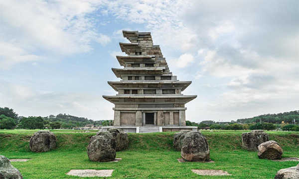 국립익산박물관을 지표면 높이에 맞춘 ‘보이지 않는 박물관’으로 만들어 광활한 미륵사지터의 양 끝에 두 개의 석탑이 대화하듯 마주 보고 있는 고즈넉한 풍광도 일품이다.