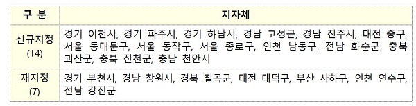 2020년 여성친화도시로 신규 지정된 지자체는 경기 이천시 등 14개이며 여성친화도시 지정 후 5년이 지난 경기 부천시 등 7개 지자체도 그간의 성과와 새로운 추진계획을 인정받아 여성친화도시로 재지정됐다.