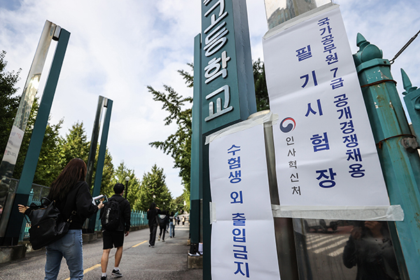 2020년도 국가공무원 7급 공개경쟁 채용 필기시험에 응시한 수험생들이 9월 26일 오전 서울 강남구 중대부고에 마련된 고사장으로 입실하고 있다. (사진=(c) 연합뉴스)[일간환경연합 장민주 기자]2021년도 국가공무원 공개채용 선발 인원이 6450명으로 확정됐다.