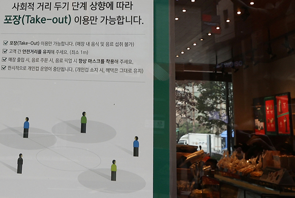 점심시간에도 한산한 명동의 한 카페.중기부는 이날 오전 8시부터 이들 대상자에게 버팀목자금 신청을 안내하는 문자메시지를 발송했다.