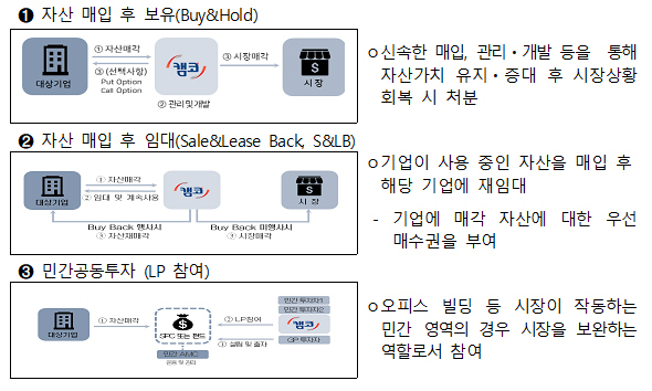 ‘기업자산매각지원 프로그램’은 대·중견 및 중소기업을 대상으로 부동산·선박 등의 자산을 매입 후 재임대(S&LB), 혹은 보유 후 매각(Buy&Hold) 등 다양한 방식으로 인수 지원하는 프로그램이다.