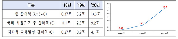 지역사랑상품권은 행안부가 지자체에 대한 지원사업을 시작한 2018년 이후 각 지역에서 큰 호응을 얻고 있으며 이에 따른 판매액도 매년 큰 폭으로 증가하는 추세다.