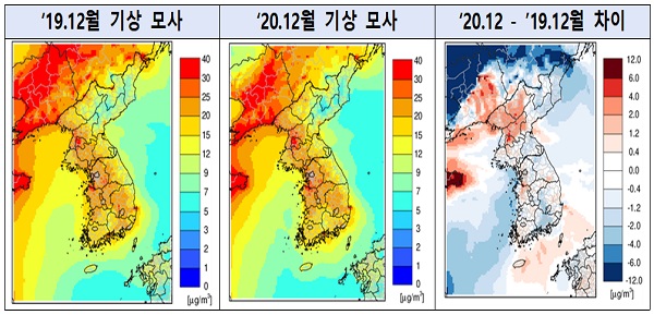 먼저 2019년 12월 대비 기상요인으로 인해 초미세먼지 농도가 소폭 개선되는 영향이 있었던 것으로 분석된다.