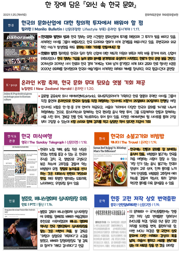 문화체육관광부 해외문화홍보원이 매주 월요일 발행하는 <한 장에 담은 외신 속 한국 문화> 49호를 소개합니다.
