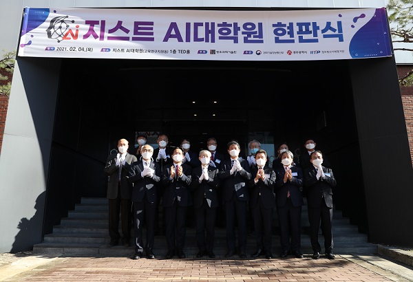 데이터센터 착수식에 이어 최기영 장관과 이용섭 광주시장은 인공지능 고급·전문 인재양성의 거점 역할을 하고 있는 광주과기원을 방문, 인공지능 대학원 현판식에 참석했다.