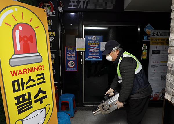 ▲ 지난 3일 서울 광진구 관계자가 건대역 인근 포차에서 방역 작업을 하고 있다. (사진=(c) 연합뉴스)식약처는 그동안 지자체, 관련 협회, 업체와 4중 관리망 방역체계를 가동해 ▲식당·카페 82만 개소 ▲유흥시설 4만 2000개소를 대상으로 총 342만 6000개소를 점검해 행정지도 5222건과 행정명령 5만 1731건을 실시했다고 밝혔다.
