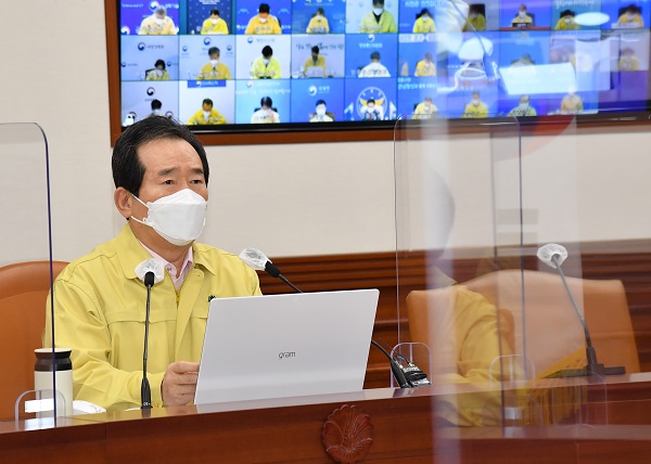 ▲ 정세균 국무총리가 4일 정부서울청사에서 열린 코로나19 중대본 회의에서 모두 발언을 하고 있다.정 총리는 이날 서울 세종로 정부서울청사에서 열린 코로나19 중앙재난안전대책본부 회의를 주재한 자리에서 “코로나19 백신 접종이 속도를 내고 있는 가운데, 어제는 요양병원 입원환자 두 분이 백신 접종 이후에 사망하는 일이 있었다”며 이같이 말했다.