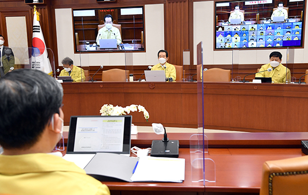 ▲ 정세균 국무총리가 10일 정부서울청사에서 열린 코로나19 중대본 회의를 주재하고 있다.