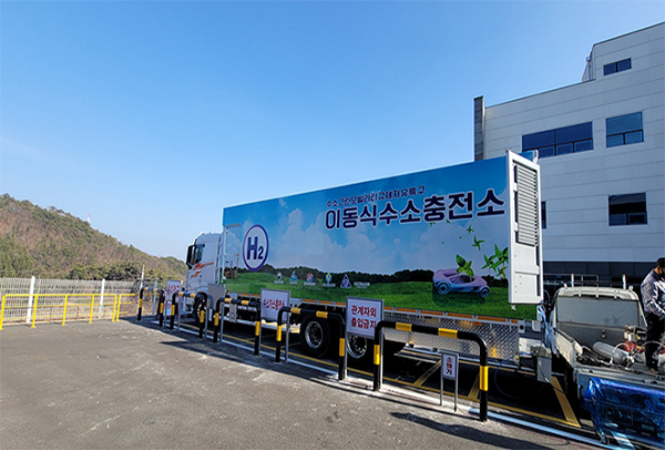 ▲ 이동식 수소충전소.전국 최대의 수소 생산·유통도시인 울산은 지난 2019년 11월 규제자유특구(수소그린모빌리티)로 지정돼 실증착수를 위한 사전준비(책임보험 가입·이용자 고지·안전에 관한 부대조건 이행 등)와 수소연료전지파워팩 등의 기술개발을 진행해 왔다.