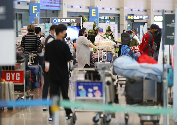 ▲ 인천국제공항이 입국객들로 붐비고 있다.(사진=(c) 연합뉴스)이번 시행계획은 ▲제도 정비를 통한 항공보안 역량 강화 ▲인적 인프라 질적 고도화 및 보안문화 확산 ▲스마트 보안 체계 구축 및 보안산업 활성화 ▲보안통제 강화로 무결점 항공보안 달성 ▲글로벌 항공보안 협력 및 리더십 강화 등 5개 분야에서 23개의 세부 추진과제로 구성돼 있다.