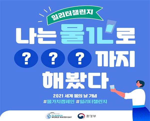 ▲ 물 1L 챌린지 이벤트 이미지.국민들이 물의 소중함을 깨우칠 수 있도록 ‘나는 물 1ℓ로 ㅇㅇㅇ까지 해봤다’라는 1ℓ 도전(챌린지) 행사를 이번 달 한 달 동안 환경부 블로그, 페이스북 등 사회관계망서비스(SNS)에서 진행하고 있다.