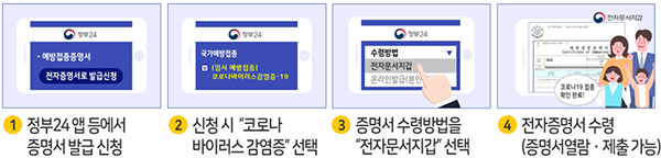 [일간환경연합 김경훈 기자]코로나19 예방접종이 본격적으로 실시됨에 따라 예방접종 증명이 필요한 국민은 스마트폰을 통해 모바일 전자증명서로 확인·발급받아 제출이 가능하다.