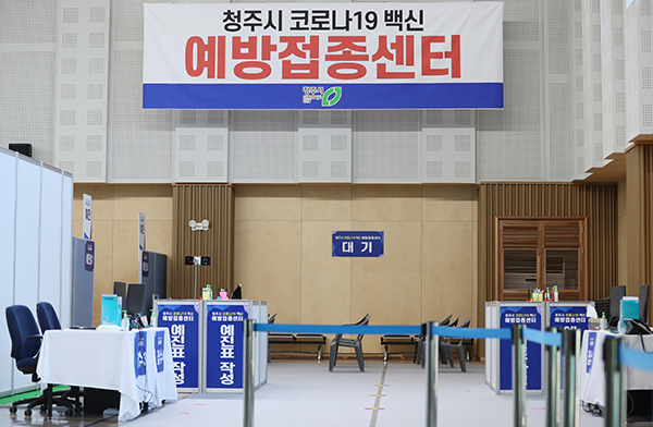 ▲ 22일 청주시 상당구청에 마련된 코로나19 예방접종센터의 모습. 이곳에서는 다음달 1일부터 75세 이상 어르신을 대상으로 코로나19 백신 접종을 실시할 예정이다. (사진=(c) 연합뉴스)한편 정 본부장은 “계속해서 사업장 및 다중이용시설에서의 집단발생이 지속되고 있다”며 세 가지 코로나19 위험요인에 대해 언급했다.