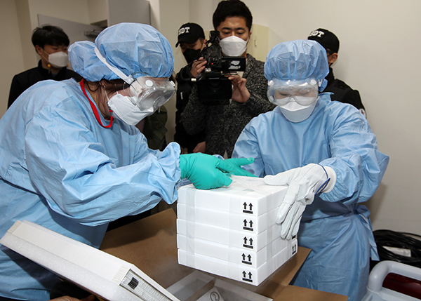 ▲ 24일 오후 광주 서구 염주체육관에 마련된 예방접종센터에서 방역 관계자들이 화이자사의 코로나19 백신을 저장고에 넣기 위해 상자에서 꺼내고 있다. (사진=(c) 연합뉴스)그동안 정부는 코로나19 백신 확보 계획에 따라 순차적으로 선구매 계약을 확대 추진해 왔으며, 이에 따른 선급금 등 소요 재원을 마련해 왔다.
