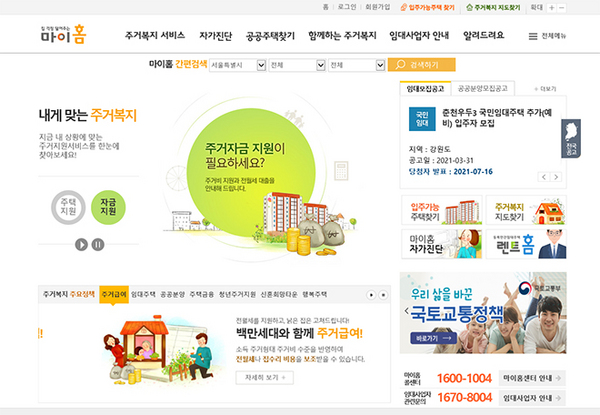 공공주택 입주를 희망하는 사람은 마이홈포털(www.myhome.go.kr)→자가진단→공공주택 자가진단 메뉴를 통해 자신의 소득·자산 등에 맞는 신청 가능한 공공주택 유형을 미리 확인할 수 있다.
