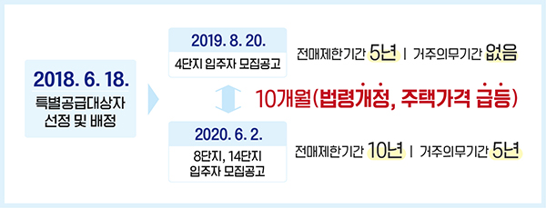 그런데 4단지에 비해 입주자모집공고일이 10개월 늦은 8단지와 14단지를 선택한 이주민들은 그 사이 주택법 시행령 등 관련법령이 개정되고 주택가격이 급격히 상승했다는 이유로 전매제한기간과 거주의무기간을 가중해 적용받게 돼 국민권익위에 집단고충민원을 신청했다.