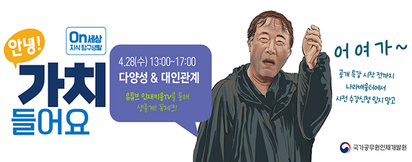 이번 강좌는 국가인재원이 지난 3월 10일부터 매월 마지막 주 수요일마다 명사 특강, 좌담회, 공연 등 다양한 형태로 운영하는 온라인 공개강좌 ‘온세상 지식탐구생활 안녕! 가치 들어요’의 4월 주제다.