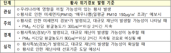 • 환경부, 10개 시도에 대해 황사 위기경보 '관심' 단계 발령