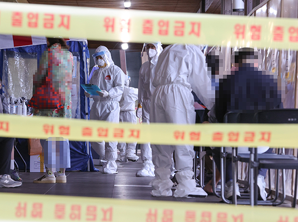 ▲ 11일 오전 서울 송파구 보건소에 설치된 신종 코로나바이러스 감염증(코로나19) 선별검사소에서 방호복을 입은 관계자들이 분주하게 업무를 하고 있다. (사진=(c) 연합뉴스)지난 3월 25일 제1차 추가경정예산 국회에서는 코로나19 원소속 의료인력 지원을 위해 ‘건강보험가입자지원(일반회계)’ 항목에 예산 480억원을 배정했고, 한시적인 의료인력 지원에 대한 건강보험 수가를 도입할 것을 부대의견 등에 명시했다.