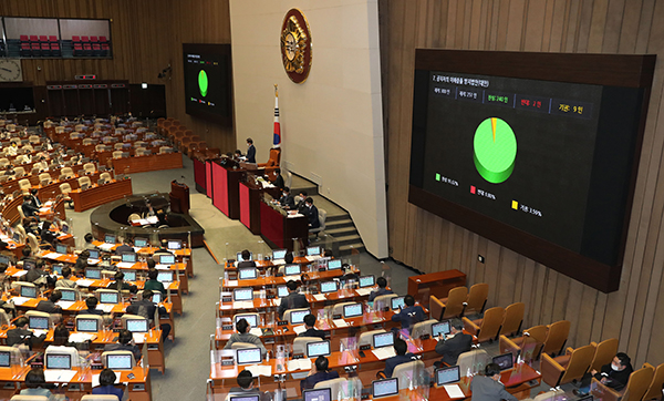 ▲ 지난 4월 29일 공직자들이 직무 관련 정보로 사익을 추구하지 못하도록 하는 공직자의 이해충돌 방지법안이 국회 본회의에서 통과되고 있다. (사진=(c) 연합뉴스)이해충돌방지법은 공공기관 내부정보를 이용한 부정한 재산 취득, 공직자 가족의 채용이나 수의계약 체결, 사적 이해관계가 있는 상대방에 대한 업무 처리 등 공정성이 의심되는 상황을 사전에 방지하고, 부정한 사익 추구행위를 근절하기 위해 공직자가 준수해야 할 10가지 행위기준을 담고 있다.