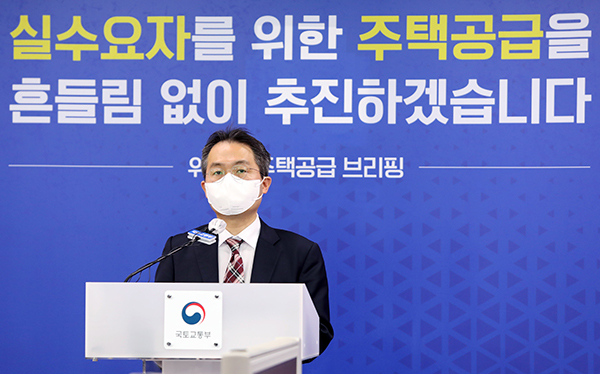 ▲ 김영한 국토교통부 주택정책관이 26일 세종시 정부세종청사에서 열린 제9차 위클리 주택공급 브리핑에서 4차 도심 공공주택 복합사업 선도사업 후보지 선정 결과를 발표하고 있다.(사진=국토교통부)
