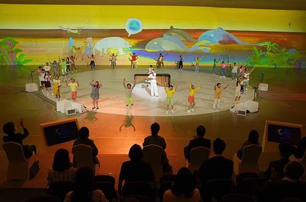 ▲ 30일 오후 서울 동대문디자인플라자에서 열린 ‘2021 P4G 서울 녹색미래 정상회의’ 개회식에서 캠페인송 ‘We are one’공연이 펼쳐지고 있다.(사진=청와대)행사는 기후위기 해결과 지속가능 성장을 추구하는 각국 스타트업이 혁신적인 아이디어를 공유하고 글로벌 투자 상담을 통해 성장할 수 있는 기회를 제공하기 위해 마련됐다.