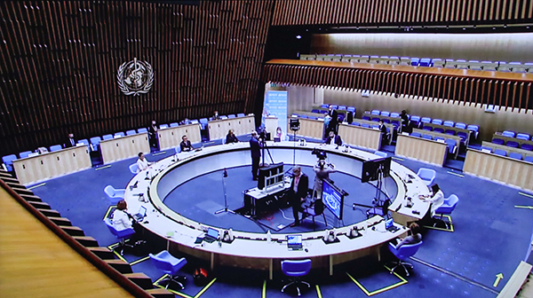 ▲ 지난 5월 24일 스위스 제네바 세계보건기구(WHO) 본부에서 열린 제74차 세계보건기구(WHO) 회의. (사진=(c) Xinhua/Zheng Huansong/연합뉴스)우리나라는 지난해 5월 집행이사국 선출 이후 WHO의 예산 및 주요 사업 전략 및 운영 방향을 검토하고 제안하는 등 주도적으로 기구의 운영에 참여해 우리나라 입장을 적극 반영하고 있다.