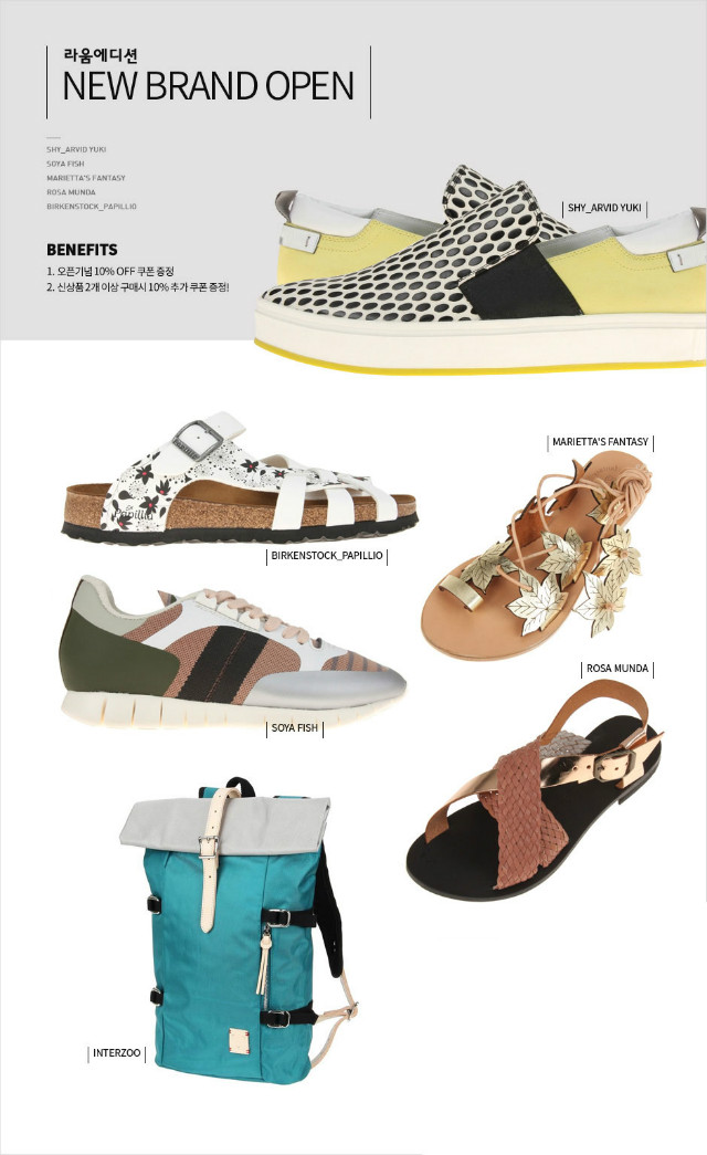 이번 NEW BRAND OPEN 행사는 5월 11일부터 5월 17일까지 신규 브랜드 구매 고객에게 10% OFF 쿠폰 증정
