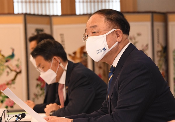 ▲ 홍남기 부총리 겸 기획재정부 장관이 3일 서울 광화문 정부서울청사에서 열린 ‘제23차 부동산시장 점검 관계장관회의`를 주재, 모두발언을 하고 있다. (사진=기획재정부)앞서 당정은 지난달 27일 협의를 거쳐 실수요자 LTV 우대 폭을 현행 10%포인트에서 최대 20%포인트로 확대하기로 했다.
