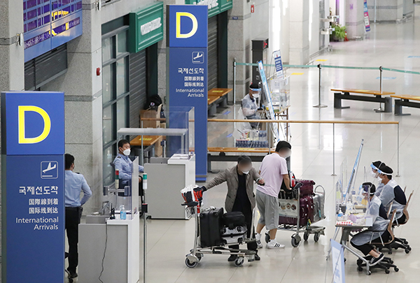 ▲ 영종도 인천국제공항 1터미널에서 해외입국자들이 검역 절차를 안내받고 있다.(사진=(c) 연합뉴스)여행안전권역은 방역관리에 대한 상호신뢰가 확보된 국가 간 격리를 면제해 일반 여행목적의 국제이동을 재개하는 것을 말한다.