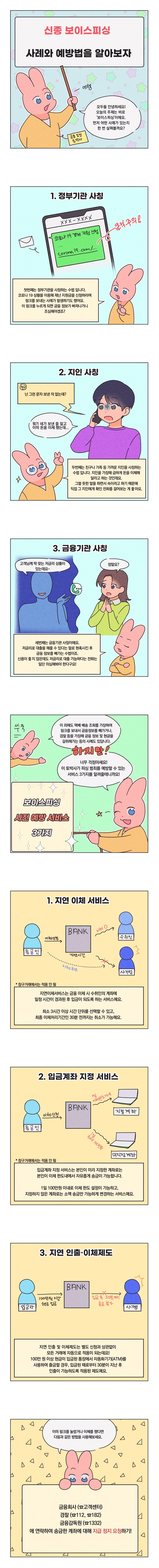 [일간환경연합 장민주 기자]다음은 보이스피싱 사례와 예방법에 대하여 알아 보겠습니다. 신종 보이스피싱 예방법 웹툰으로 한눈에 확인 하겠습니다.