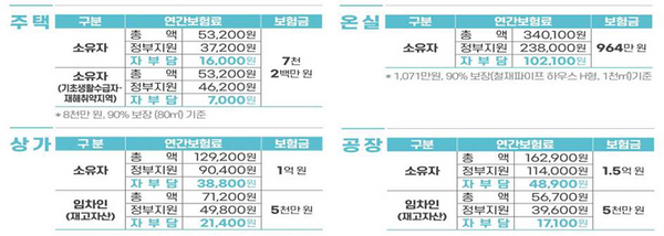 한편 가입 문의는 보험사별 대표전화(02-2100-5103~7) 또는 지자체 재난담당부서·주민센터로 문의하거나 국민재난안전포털(http://safekorea.go.kr)을 통해 정보를 얻을 수 있다.