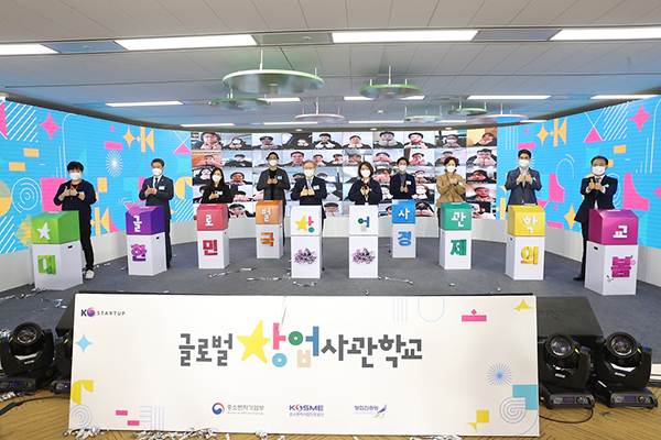 ▲ 지난 5월 13일 구로구 G타워에서 열린 글로벌창업사관학교 2기 입교식에 참석한 권칠승 중기부 장관과 참석자들이 제2벤처붐 세레모니를 하고 있다.(사진=중소벤처기업부)‘이어드림 프로젝트’에서는 이론과 실전을 병행한 장기 집중 교육과정을 운영한다.