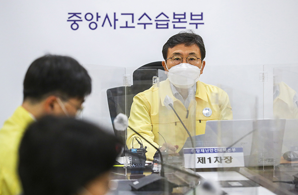 ▲ 권덕철 중앙재난안전대책본부 제1차장(보건복지부 장관)이 중앙재난안전대책본부 회의를 주재하며 발언하고 있다. (사진=보건복지부)권 1차장은 “주간 단위로 보았을 때 여전히 일 평균 400명대 중반의 적지 않은 규모의 국내 발생 신규 확진자가 계속 발생하고 있다”고 우려했다.