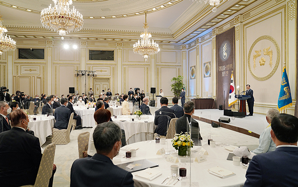문 대통령은 이날 청와대에서 개최한 국가유공자·보훈가족 초청 오찬에서 “대한민국의 발전이 비슷한 출발선에 있었던 개도국들에게 ‘우리도 할 수 있다’는 용기를 주고 있듯이, 코로나를 극복하고 빠른 경제 회복을 이루고 있는 오늘의 우리 역시 세계인들에게 희망의 이정표가 되고 있다”며 이같이 밝혔다.