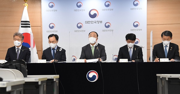 홍 부총리는 “아직 코로나 위기가 종식된 것은 아니지만, 글로벌 경제의 회복·반등이 본격화되는 가운데 이제는 ‘위기를 딛고 도약하는 경제’로 거듭나야 할 시점”이라며 “정부는 올해 반드시 지금의 위기를 이겨내고 다시 일어서는 따뜻하고 ‘완전한 경제회복’과 일어선 후 앞을 향해 힘차게 달려 나가는 우리 경제의 ‘선도형 경제로의 구조 대전환'을 일궈 내겠다”고 말했다.