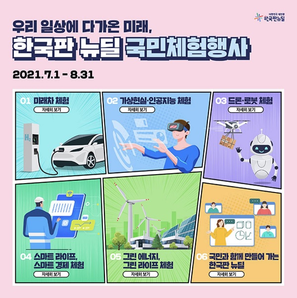 [일간환경연합 장민주 기자]정부가 ‘한국판 뉴딜 종합계획’ 발표 1년을 계기로 한국판 뉴딜의 성과와 이에 따른 일상 변화를 국민이 직접 체험할 수 있는 행사를 개최한다.