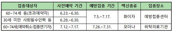 접종 시기는 55∼59세는 26일부터, 50∼54세는 8월 9일부터 예방접종센터와 위탁의료기관에서 모더나 백신으로 실시한다.