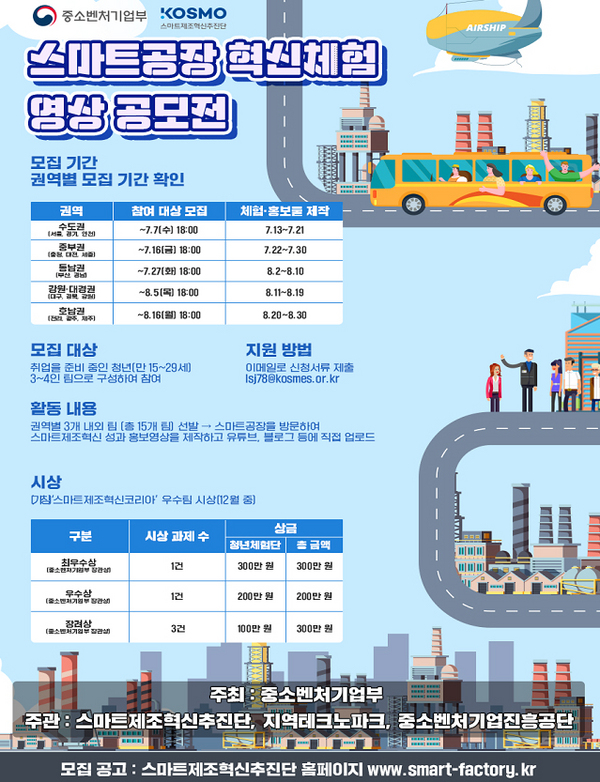 취업준비 청년의 관점에서 중소기업의 스마트 제조혁신에 대한 평가와 소감, 취업기대 등을 참신한 아이디어로 영상으로 제작해 유튜브, 블로그 등 사회관계망서비스(SNS)에 직접 홍보하게 된다.