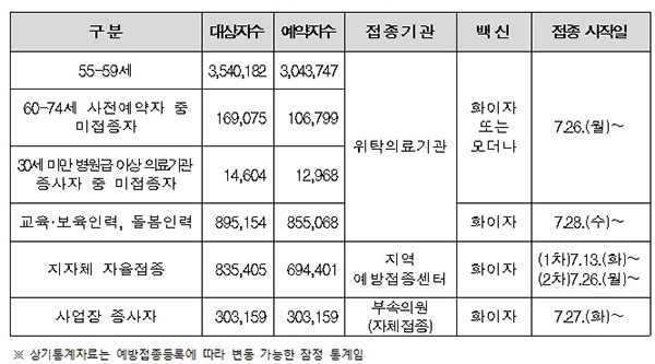 아울러 8월 첫째주에 예방접종 사전예약을 완료한 대상에는 접종일 전에 백신 종류 등을 문자로 개별 안내할 예정이다.
